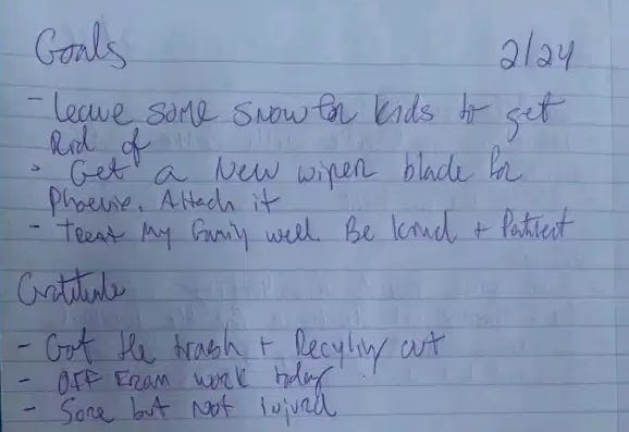 I started Tuesday morning as I do most every morning with prayer, followed by writing my goals and gratitude list for the day.